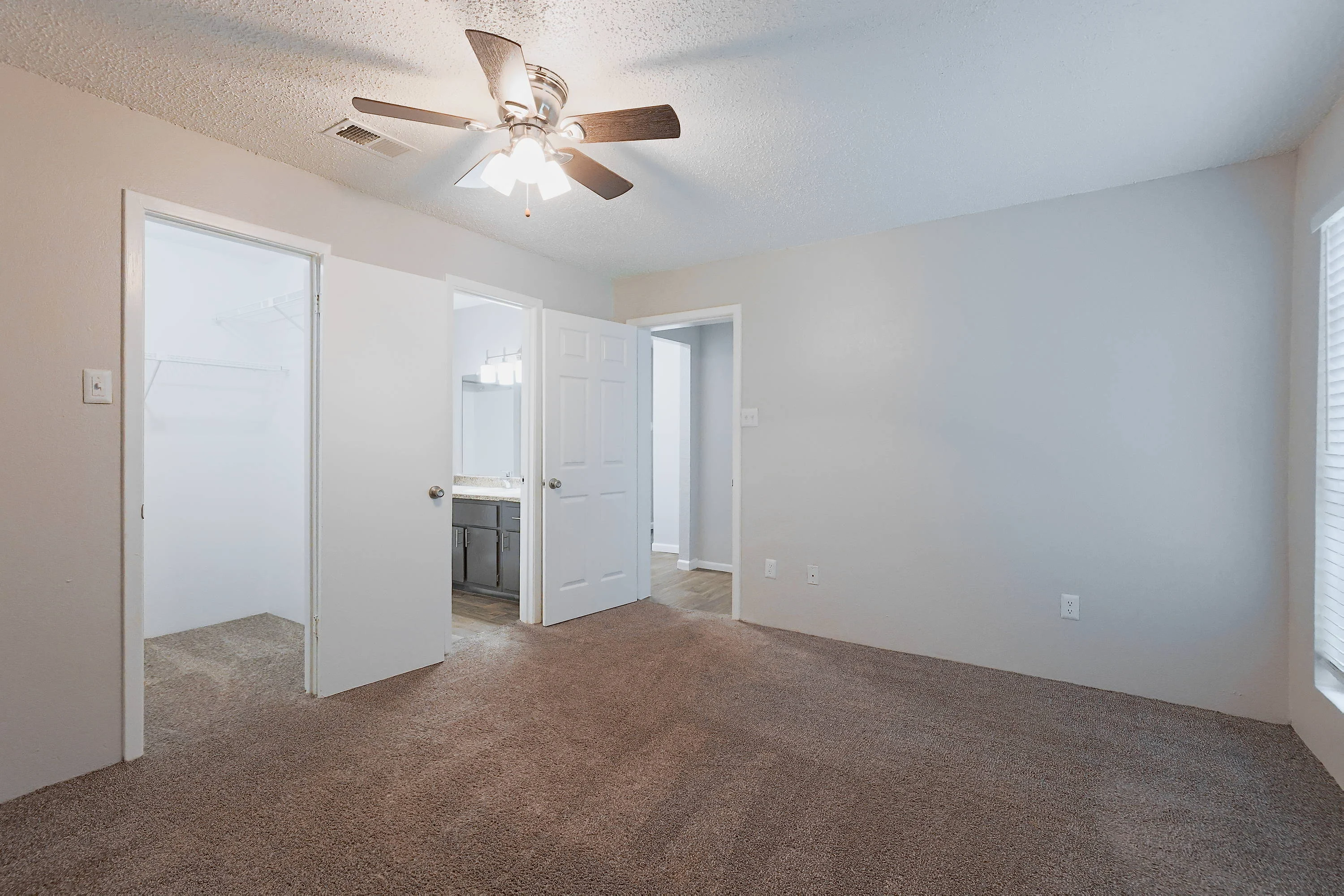 This is our three bedroom, two bathroom floorplan with 1,110 square feet of living space. Positioned on the second floor, this corner layout showcases a galley kitchen with a wraparound counter, seamlessly connecting to the living area, offering space for bar stools. A full-size washer and dryer are conveniently tucked behind the kitchen. Each room boasts its own walk-in closet with ample storage, and the master bathroom boasts a linen closet for additional storage. Please call a member of our friendly leasing staff for more information!